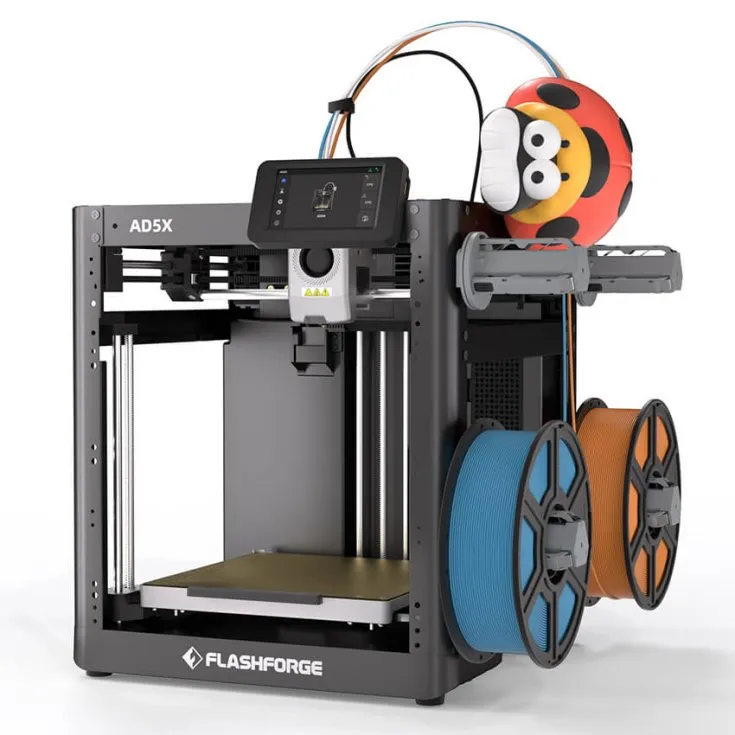 Flashforge Adventurer 5X - это универсальный и мощный 3D-принтер, способный осуществлять многоцветную печать вплоть до четырех цветов. Он способен работать на высокой скорости, достигая 600 мм/с и ускоряясь до 20 000 мм/с², что делает его отличным выбором для тех, кому нужна быстрая и эффективная печать.