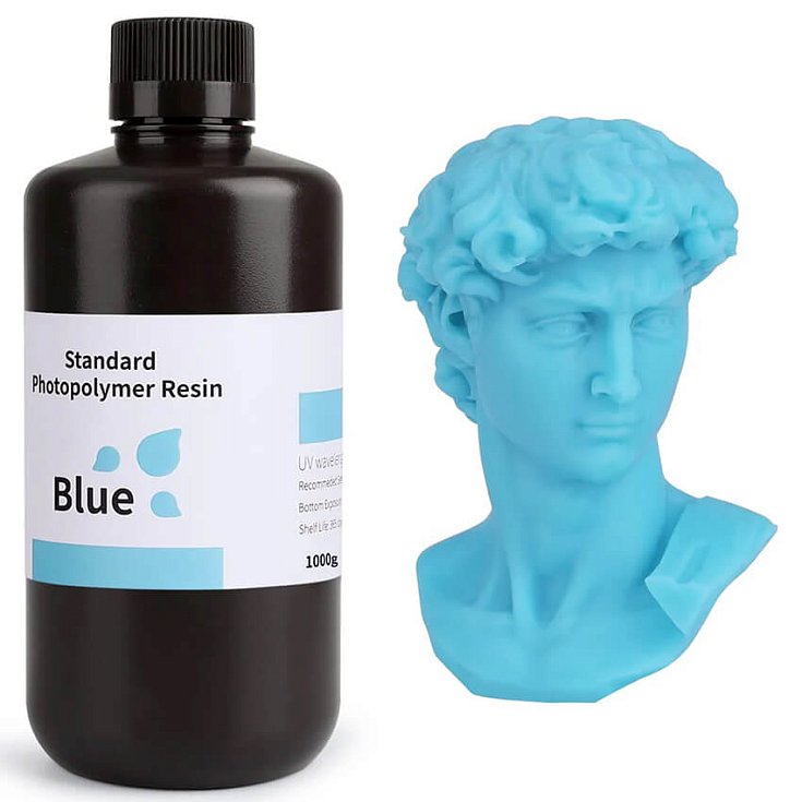 Фотополимерная смола Elegoo Standard Resin синего цвета — это высококачественный материал для 3D-печати, который сочетает в себе превосходную точность детализации и надежность. Благодаря специально разработанной формуле смола обеспечивает стабильно высокий результат даже при длительных сеансах печати.