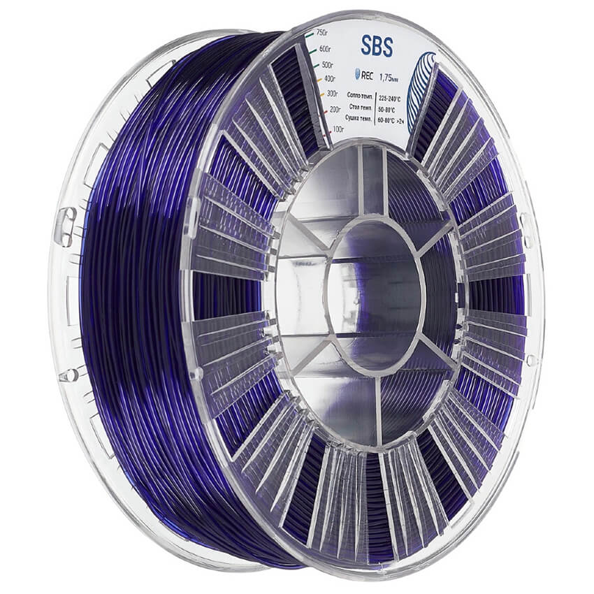 REC SBS — это прозрачный модельный пластик, который отличается низкой усадкой и минимальным влагопоглощением. Благодаря этим свойствам он прост в использовании: для печати не требуется тщательная сушка материала или высокая точность калибровки принтера. Материал не имеет выраженного запаха.
