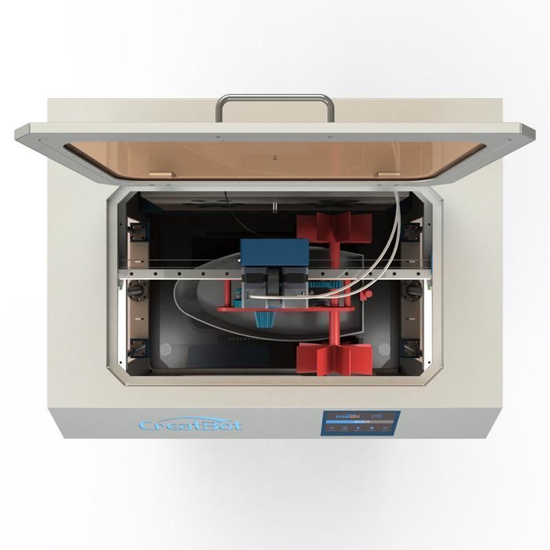 В профессиональной сфере высоким спросом пользуется CreatBot F430. Принтер, оснащенный системой из двух независимых экструдеров, позволяет быстро выполнять поставленную задачу. Техника работает как с базовыми материалами, так и со специальными, высокотемпературными пластиками, что существенно расширяет возможности применения.
