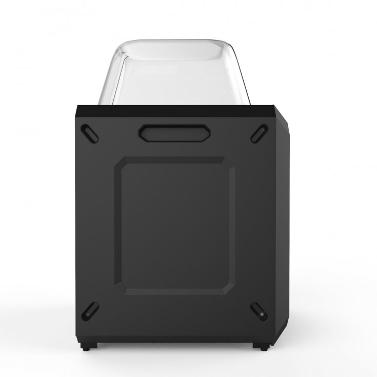 Дизайн принтера очень лаконичный - черный матовый закрытый корпус из ударопрочного ABS пластика с отверстиями для удобной переноски принтера. В верхней части находится большой 5 дюймовый сенсорный дисплей. Большому принтеру - большой дисплей и это очень классно! Некоторые производители экономят и ставят совсем небольшие дисплеи на огромные принтеры. Это конечно не влияет на функционал, но смотрится немного некрасиво. Guider несмотря на свои размеры выглядит очень гармонично.