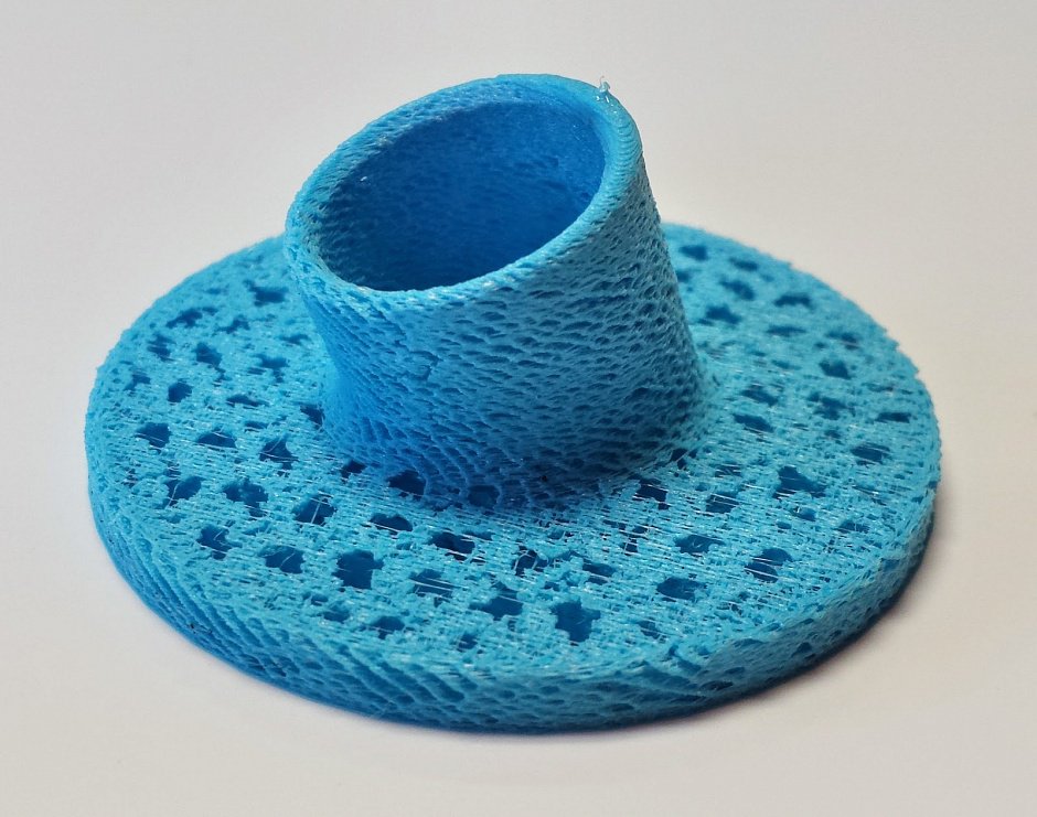 В конце мы решили попробовать попечатать мягким пластиком. В принципе все отлично. Только Wanhao i3 2.0 немного недогрел сопло во время печати. Из-за этого внешний контур плохо спекся.