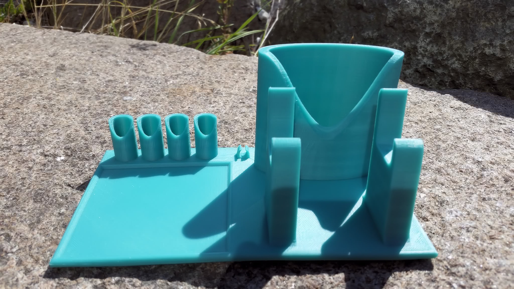 Для тестов мы использовали пластик ABS, PLA, PVA, HIPS фирмы Esun. При переходе с одного типа пластика на другой прочищали экструдер чистящим пластиком Esun (Кстати хорошая и удобная вещь. Очень экономично расходуется. Стандартная упаковка на 100 гр. оказалась достаточно большой).