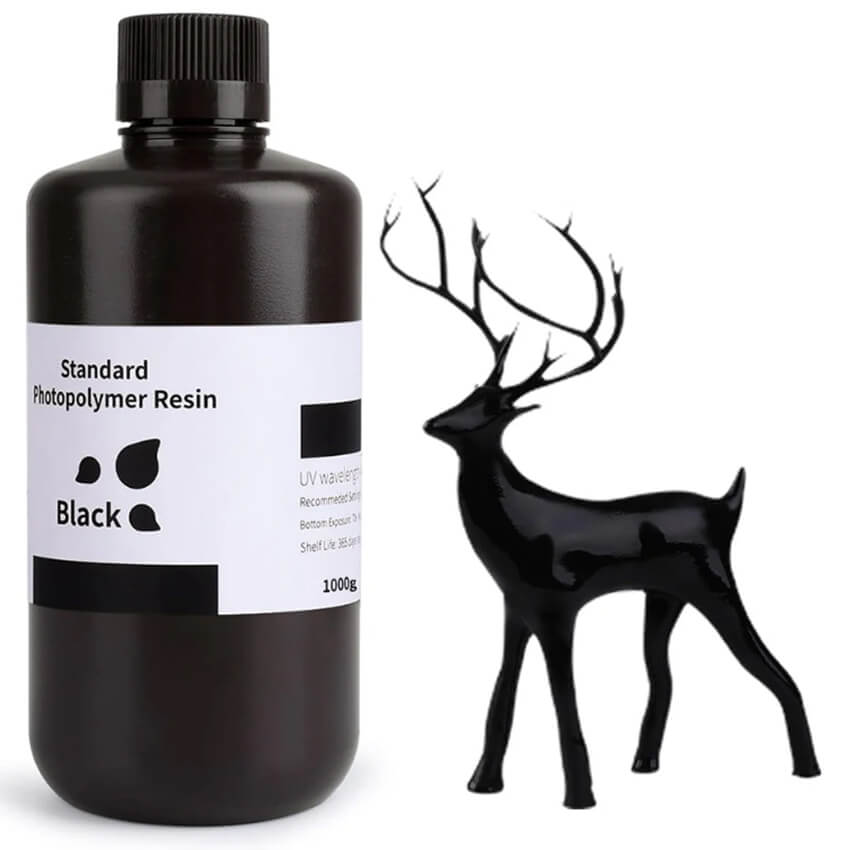 Фотополимерная смола Elegoo Standard Resin черного цвета — это высококачественный материал для 3D-печати, который сочетает в себе превосходную точность детализации и надежность. Благодаря специально разработанной формуле смола обеспечивает стабильно высокий результат даже при длительных сеансах печати.