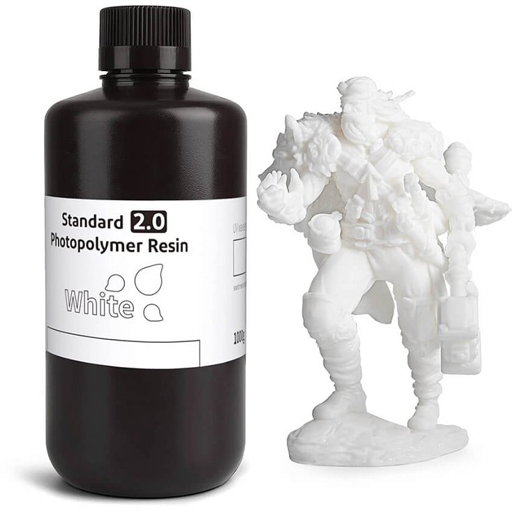 Фотополимерная смола ELEGOO Standard Resin V2.0 белого цвета обладает высокой светостойкостью, благодаря чему на поверхности отпечатанных моделей не остается излишков смолы. Это гарантирует, что каждая модель будет иметь гладкую поверхность, четкую текстуру и проработанные детали.