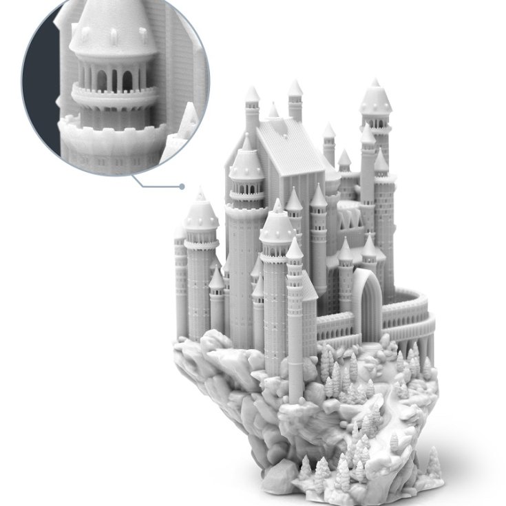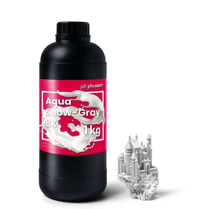 Фотополимер Phrozen Aqua 8K Snow-Gray светло-серого цвета характеризуется отсутствием деформации, поэтому с ее помощью можно печатать архитектурные детали и другие 3D-модели с высокой детализацией. Эластичность смолы позволяет легко обрабатывать изделия, отсутствие запаха не доставит неудобств во время работы.