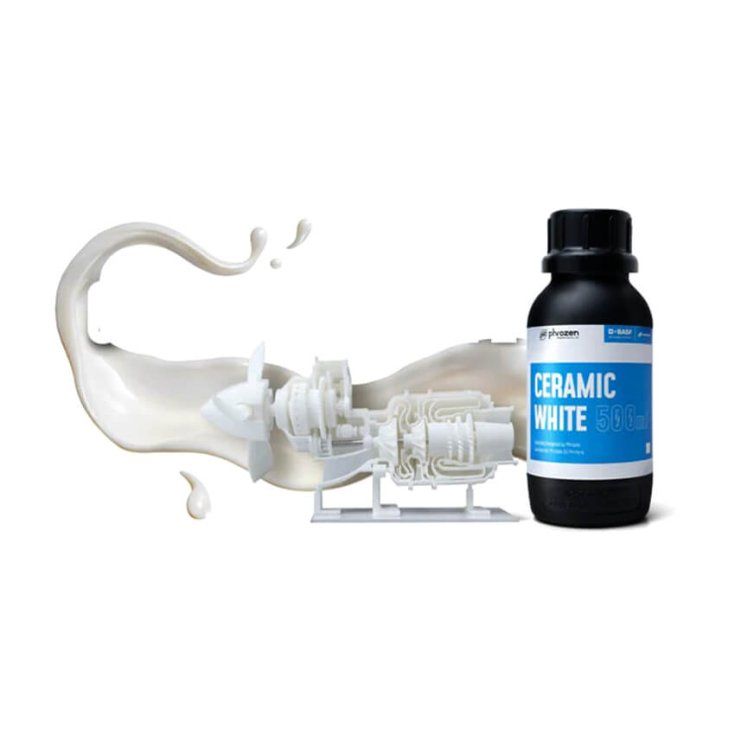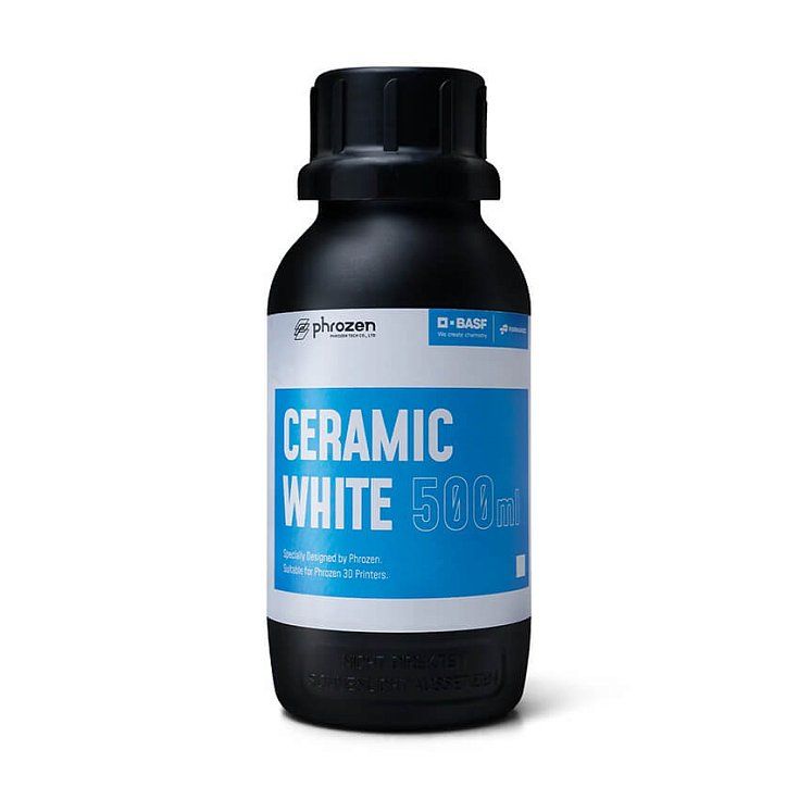 Фотополимерная смола Phrozen Ceramic White, белый (500 мл) с содержанием в составе керамики свыше 50%, она способна добиться гладкой матовой поверхности и внешнего вида, как у настоящего керамического изделия. Фотополимер с высокой износостойкостью и жесткость до 5800 Мпа, а также низким водопоглощением. Обладает отличной текучестью благодаря сверхнизкой вязкости 120 мПа·с. Смола проста в использовании и постобработке. Отлично подходит для создания высокоточных инженерных прототипов, элементов декора требующих высокого уровня детализации.