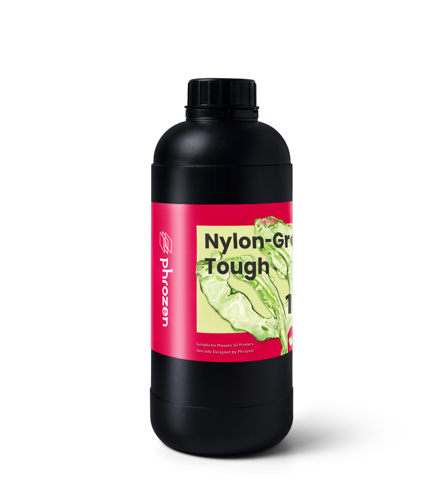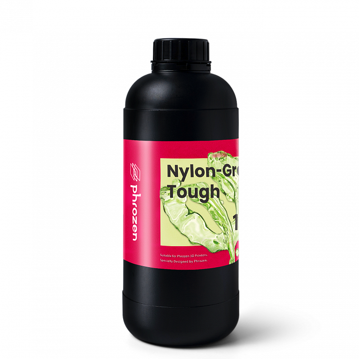 Фотополимерная смола с добавлением нейлона Phrozen Nylon Green Tough обеспечивает напечатанным изделиям и прототипам дополнительную эластичность и повышенную прочность. Материал выдерживает давление до 19 Мпа, поэтому подходит для создания сложных 3D-моделей для функционального использования в промышленных целях.